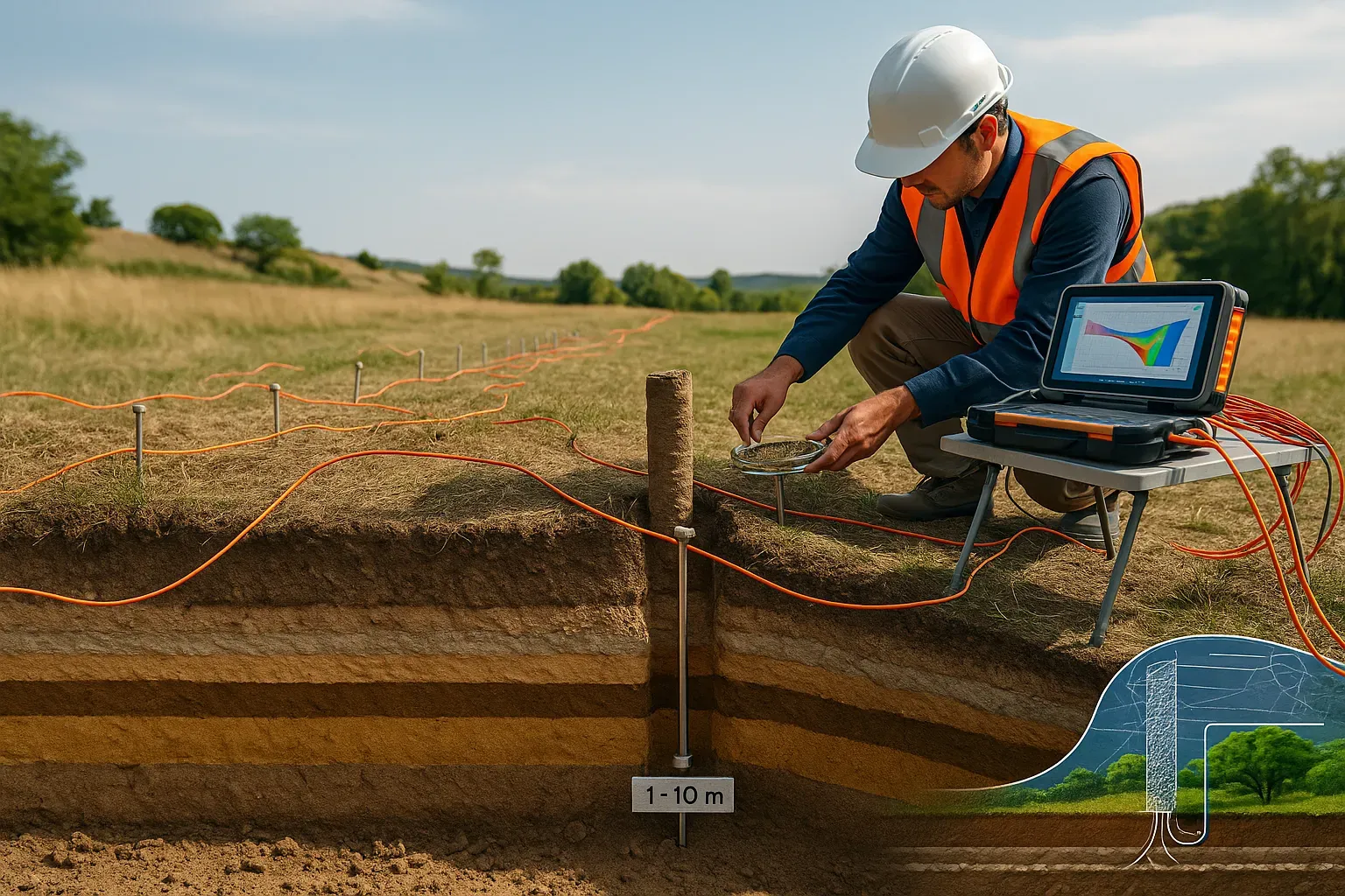 • Indagini geoelettriche: Utilizzate per la caratterizzazione profonda dei terreni, individuando anomalie e strutture sepolte.